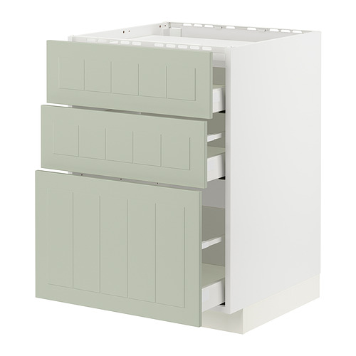 METOD / MAXIMERA armario bajo placa 3cajones3frentes, blanco / Stensund verde claro