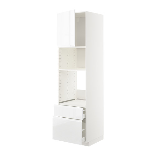 Armario horno/micro puerta con 2 cajones, blanco/Voxtorp alto brillo/blanco