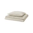 El juego de funda nórdica SOLFIBBLA está hecho de suave algodón 100% y cuenta con rayas atemporales de hilo teñido en verde y blanco. Los hilos gruesos le dan un estilo acogedor y artesanal a tu dormitorio, así como cierto encanto vintage.