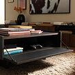 Dos compartimentos de almacenaje con abertura horizontal para guardar las cosas que quieras tener fuera de la vista pero accesibles, como mandos a distancia, videoconsolas, revistas y libros.