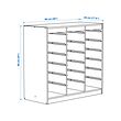 Esta estructura TROFAST blanca se convierte en una práctica solución para guardar cosas gracias a las baldas, bandejas de almacenaje y cajas en plástico colorido o en un elegante diseño de malla. También sirve de biombo.