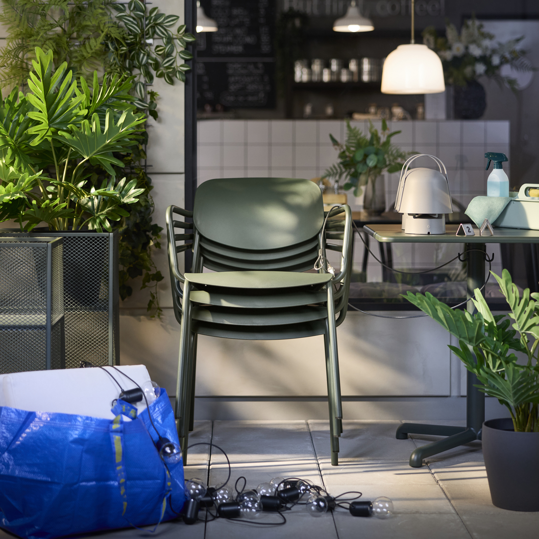 Al combinar los muebles de la serie VISINGSÖ, puedes conseguir un aspecto conjuntado con un estilo atemporal en tu espacio exterior.