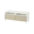 BESTÅ TV bench with drawer runner, push-open, white / KRUKMAKARE beige, 120x42x48 cm