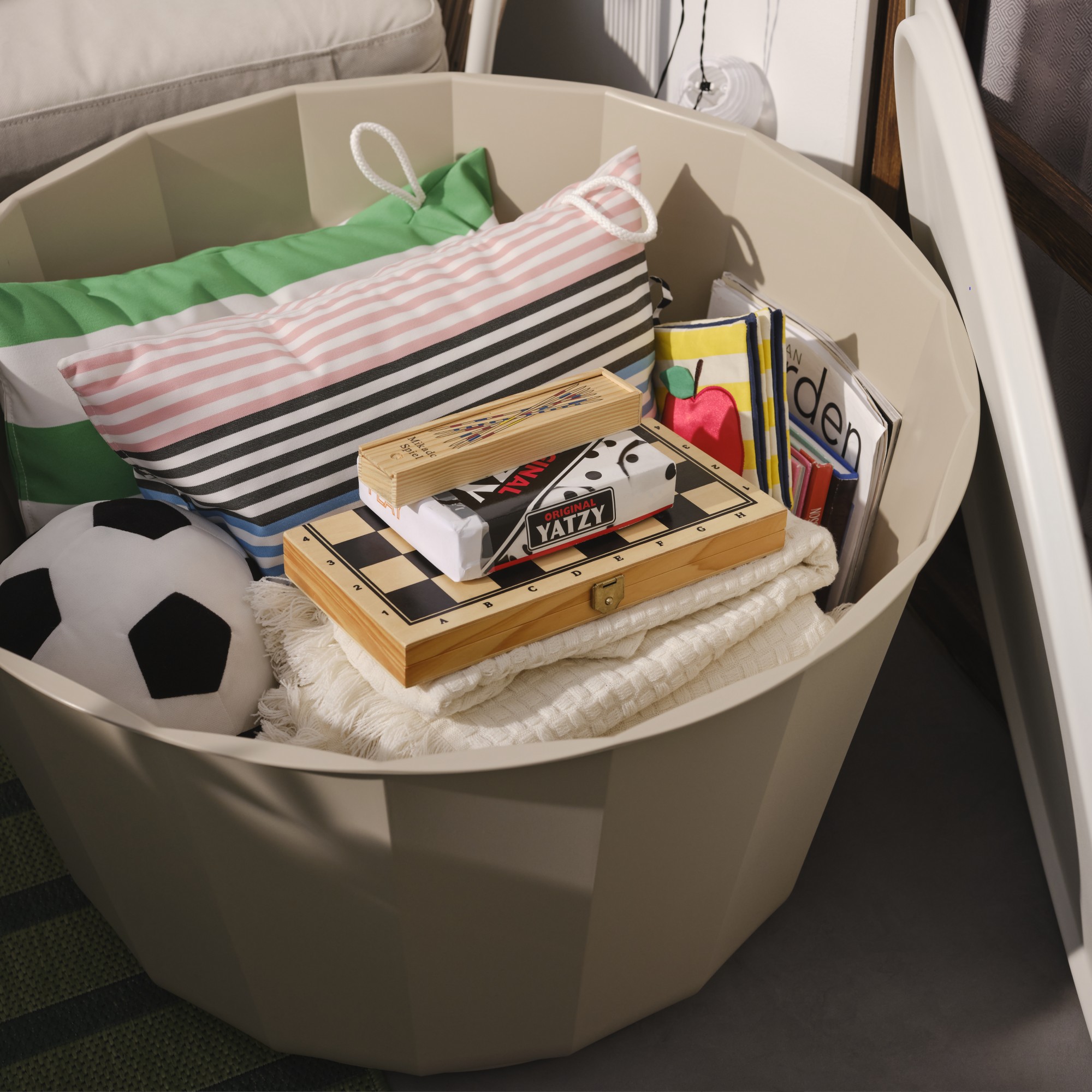 This coffee table with storage offers space for storing tableware, cushions and furniture covers.