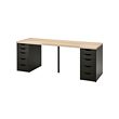 LAGKAPTEN / ALEX desk, white stained oak effect / black-brown, 200x60 cm
