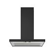 Campana extractora de cocina moderna con diseño elegante e iluminación led. Construcción en acero inoxidable, acabado en negro, líneas limpias.