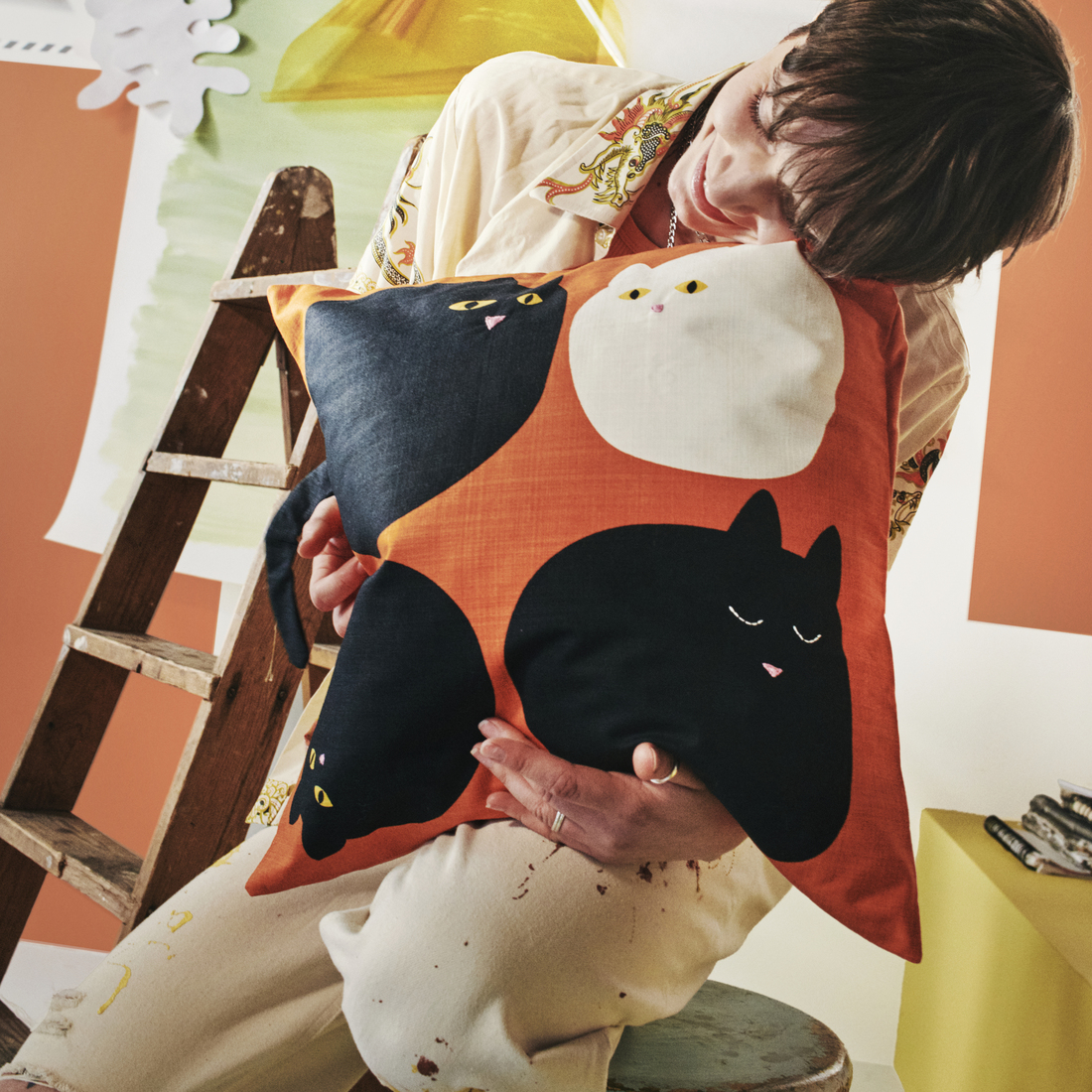 Meow! This decorative cushion cover with cats and hand-embroidered details has a playful expression that is guaranteed to be an eye-catcher. Made of durable cotton that you can machine wash.