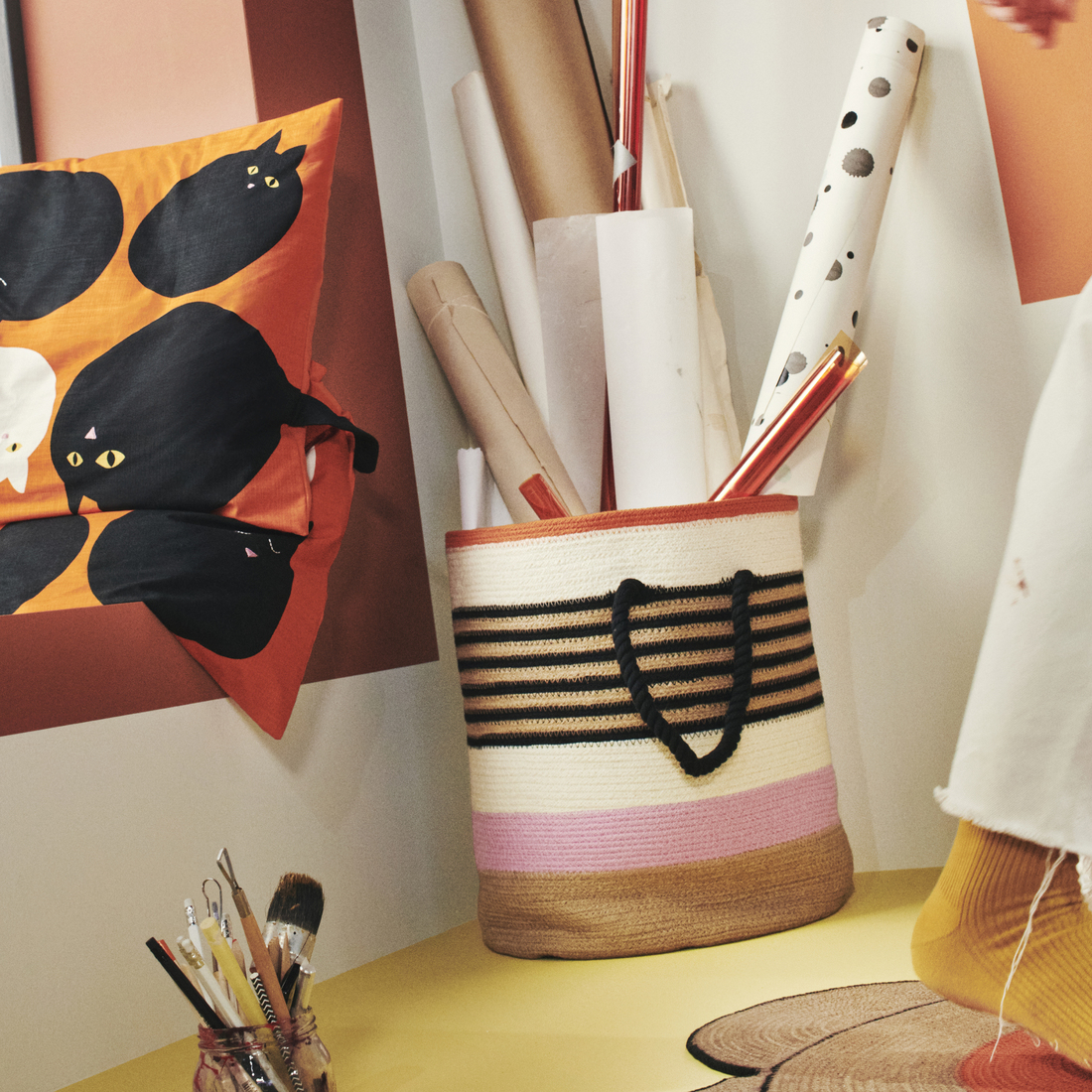 Then you’ll surely remember the scents, vibe and all the lovely handmade things in the colors of a rainbow. We want to evoke the same feeling with the items in the MÄVINN collection that we created and produced in collaboration with social businesses around the world. The modern design and traditional craftsmanship in textile and natural fiber together form a unique range for a bedroom; browse and pick favorites, just like at a local crafts market.