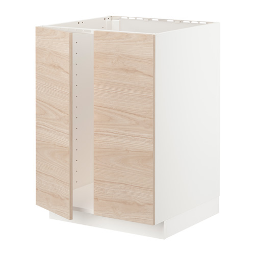Mueble de cocina METOD, fresno claro, textura de madera, marco blanco, forma cuadrada.