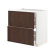 Un mueble de cocina METOD blanco con cajones de madera marrón oscuro, con un diseño elegante y moderno.