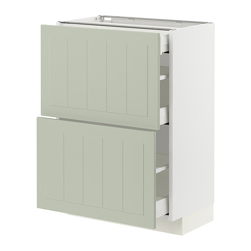 METOD / MAXIMERA base cab with 2 fronts / 3 drawers, white / Stensund light green
