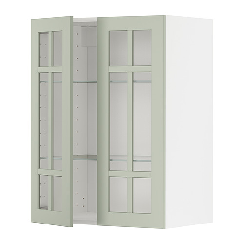 METOD wall cabinet w shelves / 2 glass drs, white / Stensund light green