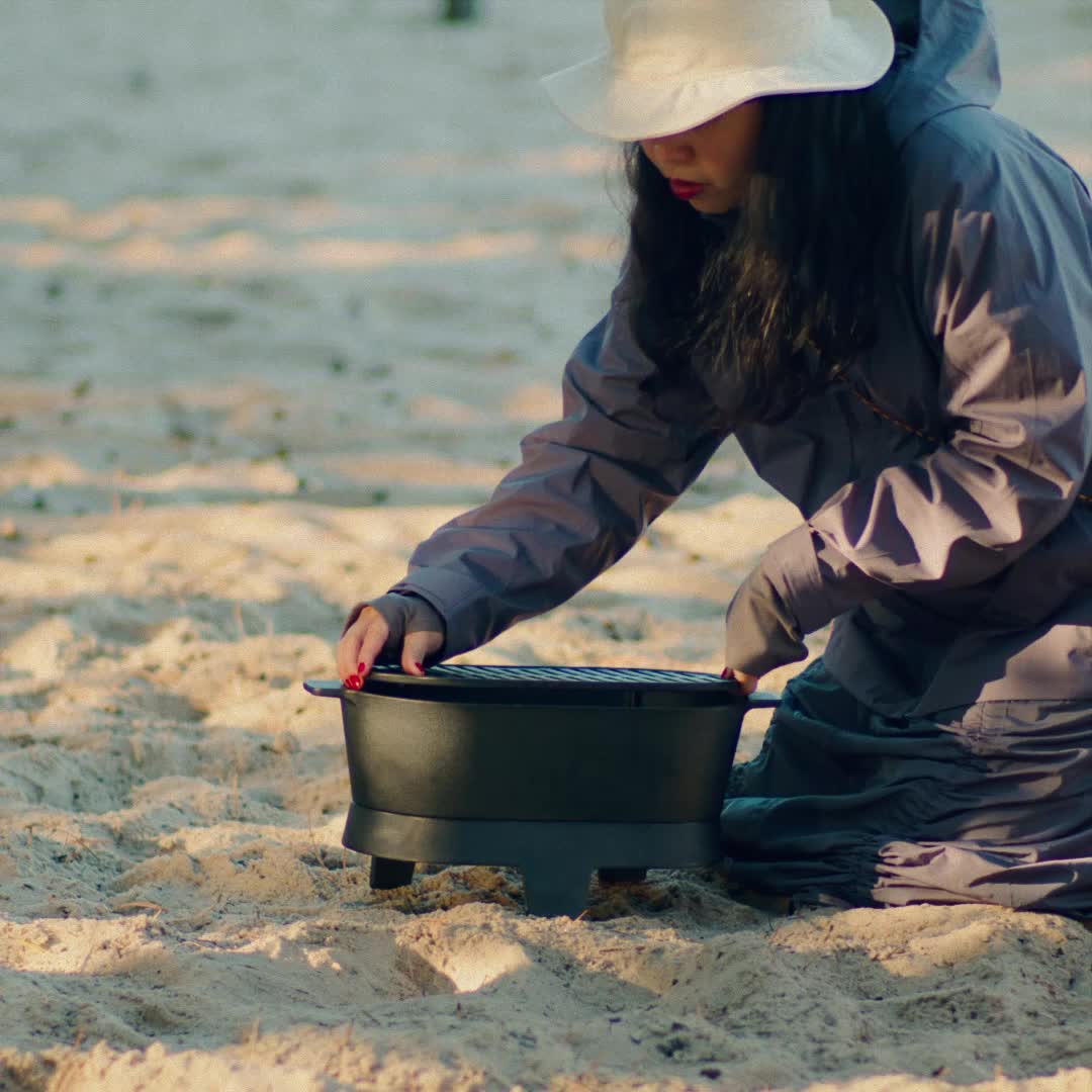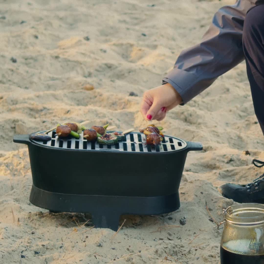 This neat cast-iron charcoal grill happily joins you, your family and friends to the park – or gladly stands sturdy in your outdoor space at home. Complete with other products in the SOLUPPGÅNG collection.