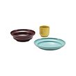 Comprises: 1 deep plate (dia. 9"), 1 deep bowl (dia. 7⅞") and 1 mug (volume 30 cl).