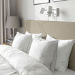 The headboard is upholstered all the way around, making the bed perfect to place in the center of the room.