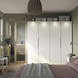 This hinged door is a perfect match with PAX white frames. The clean and simple look is an advantage since you can easily coordinate with other storage in your room.