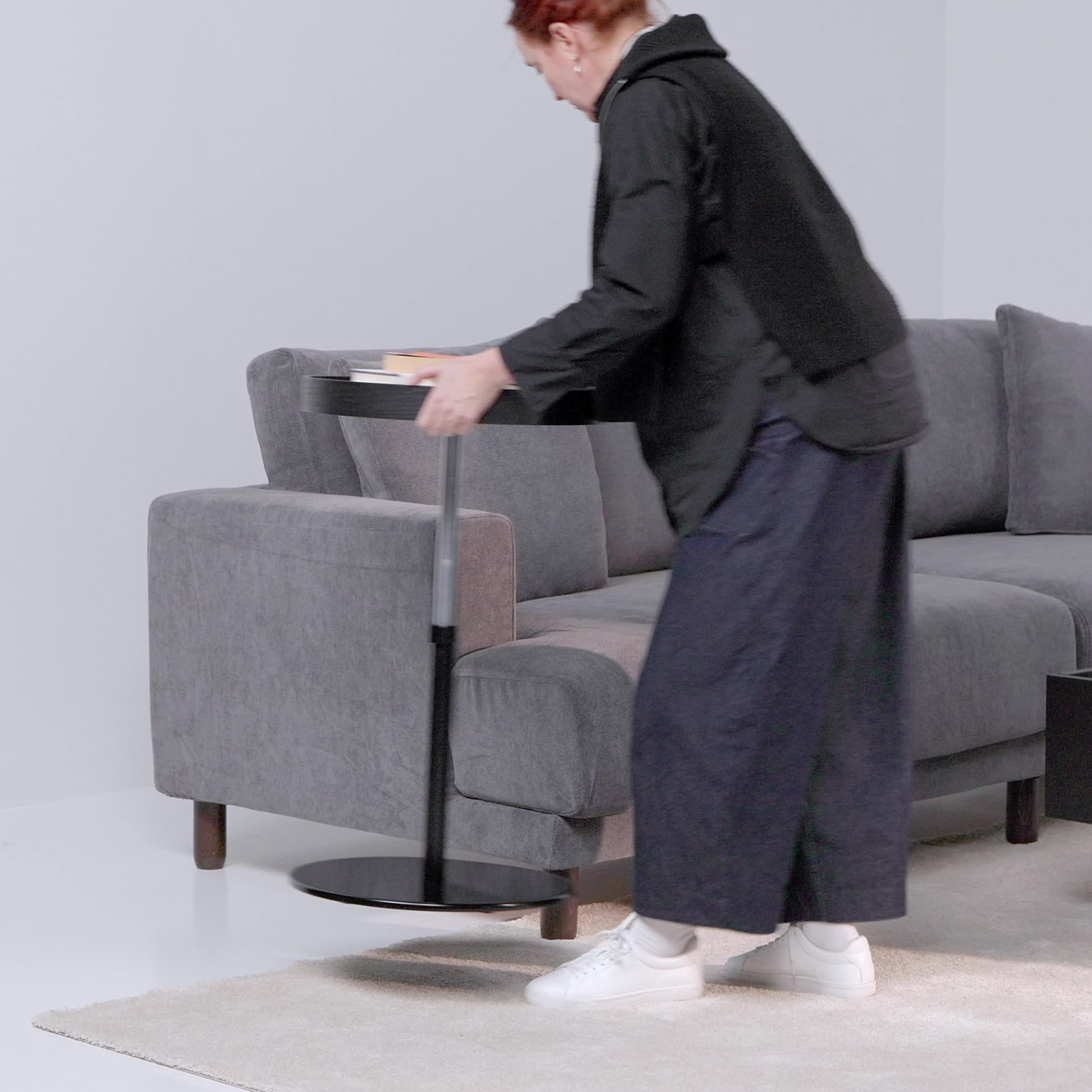 Designed to pair perfectly with UPPÅKRA sofa – the table’s highest position aligns with the armrest and the lowest aligns with the seat.