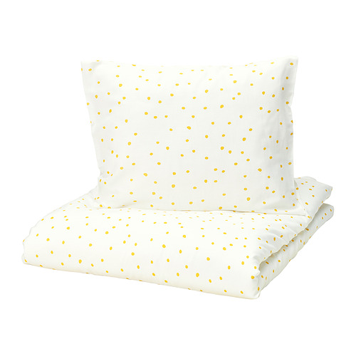 Un estampado alegre y lleno de encanto con lunares amarillos sobre un fondo blanco que le dará a tu cama una sensación ligera y veraniega. La mezcla de algodón y viscosa, suave y transpirable, resulta muy cómoda al contacto con la piel durante la noche.