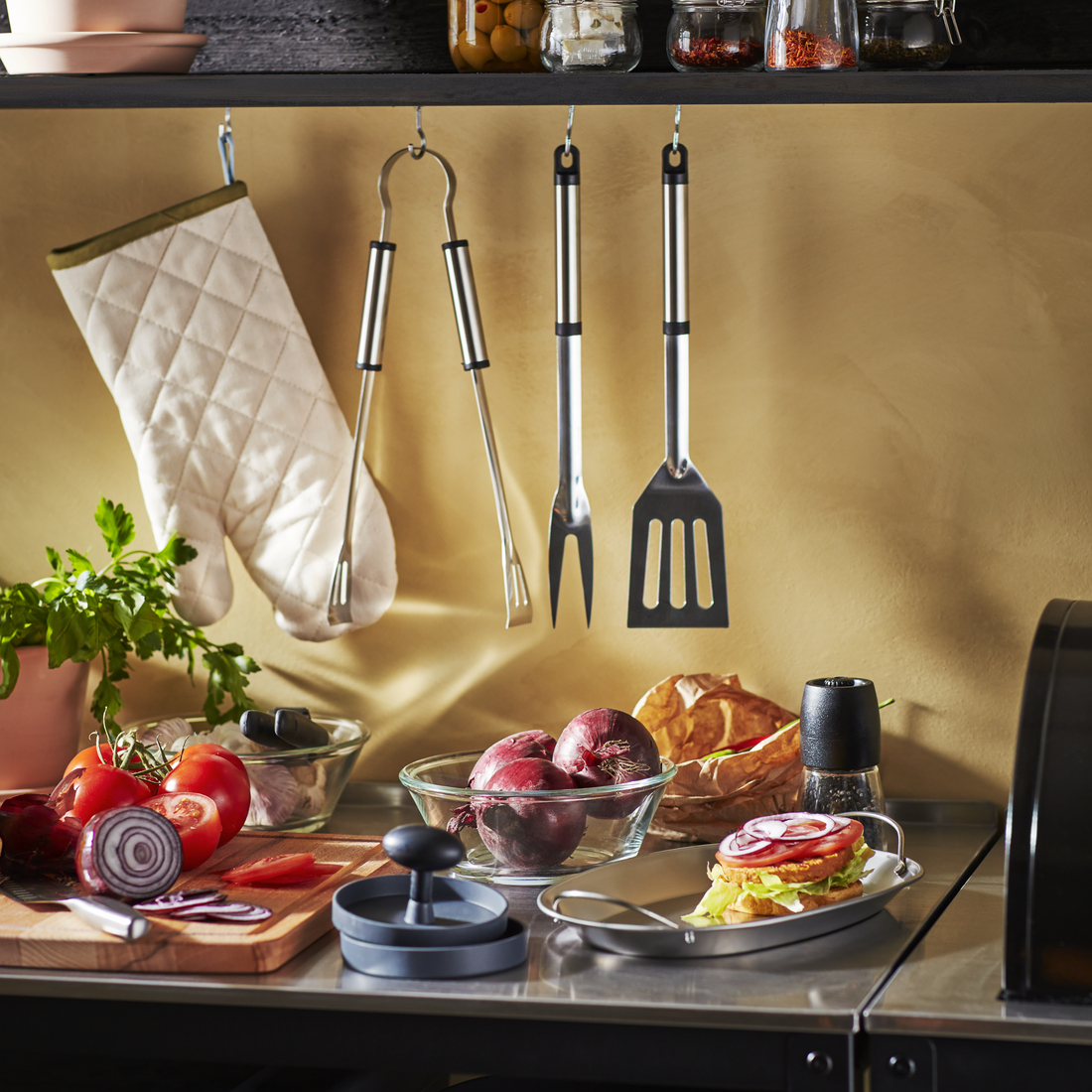 Si quieres tener una cocina completa al aire libre, puedes completar la solución con la isla de cocina y el módulo de fregadero GRILLSKÄR, que se venden por separado.