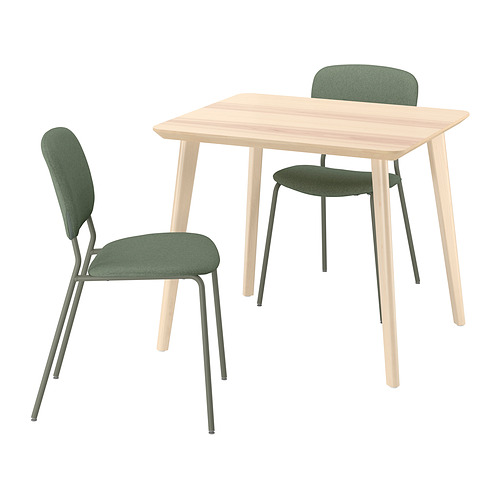 LISABO / VIHALS mesa y dos sillas, chapa fresno / verde Tibbleby verde grisáceo