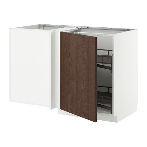 METOD armario bajo esquinero con accesorio extraíble, blanco / Sinarp marrón
