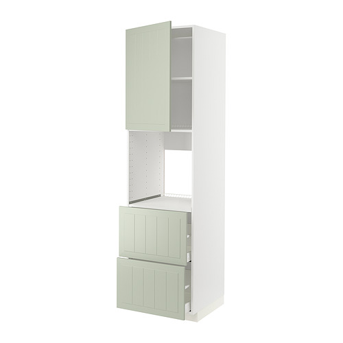 METOD / MAXIMERA armario horno con puertas y cajones, blanco / Stensund verde claro