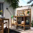 Nuestros módulos de cocina de exterior NÄMMARÖ incluyen un panel trasero de madera de acacia y tres ganchos ajustables para tener cerca los utensilios de cocina de exterior, los guantes para horno y los botes de especias. Además, el módulo de cocina NÄMMARÖ también sirve como banco para macetas, solo tienes que utilizar los ganchos para las herramientas de jardín. La madera se ha tratado previamente para una mayor protección contra el sol, la lluvia y las manchas.