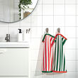 Dos toallas a rayas, verde/rojo, algodón absorbente con rayas llamativas y lazo para colgar.
