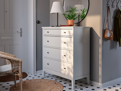 Amplia e innovadora. Esta cajonera alta tiene mucho espacio de almacenaje en sus amplios cajones de diferentes fondos. ¡Su innovadora construcción plegable te ayuda a montar los cajones de forma rápida!