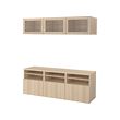 BESTÅ TV storage combination with drawer runner, soft-closing, LAPPVIKEN white stained oak effect / SINDVIK clear glass, 180x42x192 cm