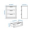 BRIMNES wardrobe has a clothes rail for shirts and dresses, an inner shelf for folded clothes like t-shirts and sweaters – and it also has room to hang your long clothes. BRIMNES bed frame has hidden storage in several places – perfect if you live in a small space. With the integrated storage in the headboard, everything is kept close at hand. Hidden neatly under the bed, there are 4 large drawers for storing duvets, pillows and bed linens. In BRIMNES chest with 3 drawers you can store everything from towels to clothes. The top drawer with frosted glass creates a distinct look.