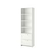 Una librería BRIMNES blanca con cajones, con estantes ajustables para almacenamiento y exhibición.