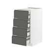 Se trata de un mueble de cocina METOD blanco con cuatro cajones grises de diseño moderno, con cajones de deslizamiento suave.