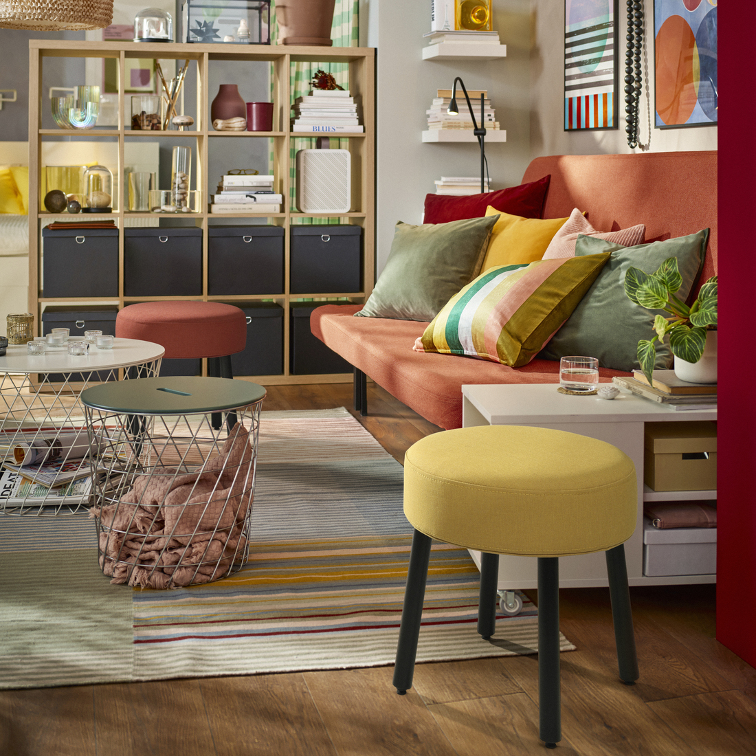 The versatile MÖRTFORS pouffe is perfect as an extra seat, footrest or side table. The timeless expression and neat shape go with most styles and make it easy to place.