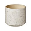 This plant pot has a simple and modern shape with a matte and subtly speckled finish in beige.