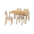TONSTAD extendable table and 4 chairs, oak veneer / oak effect Fridtuna light beige, 140 / 196x85 cm