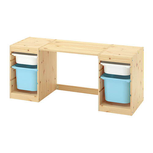 TROFAST desk with storage boxes, light white stained pine / white light blue