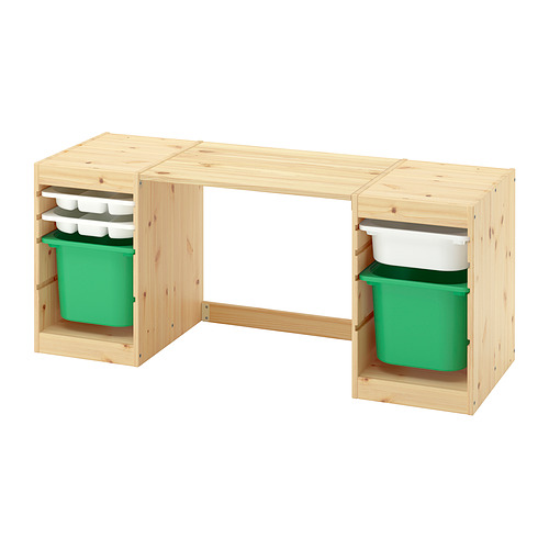 TROFAST desk with storage boxes / trays, light white stained pine / white bright green