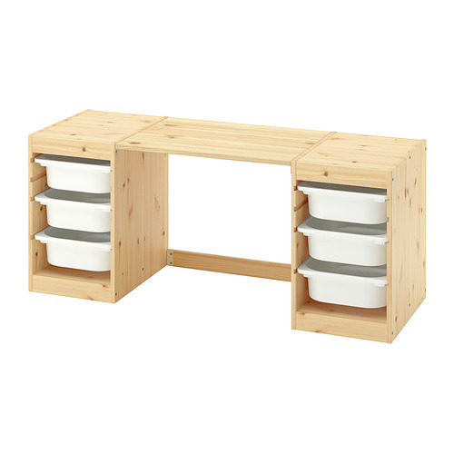 TROFAST desk with storage boxes, light white stained pine white