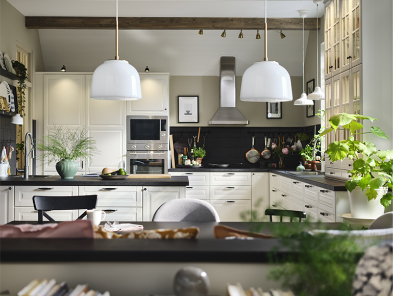 Luminosa, abierta, lista para la vida real: bienvenido a una cocina con almacenamiento optimizado y una distribución abierta con espacio para la familia y los amigos. Dos fregaderos facilitan la preparación y la limpieza, y una acogedora península añade espacio de trabajo y asientos.
