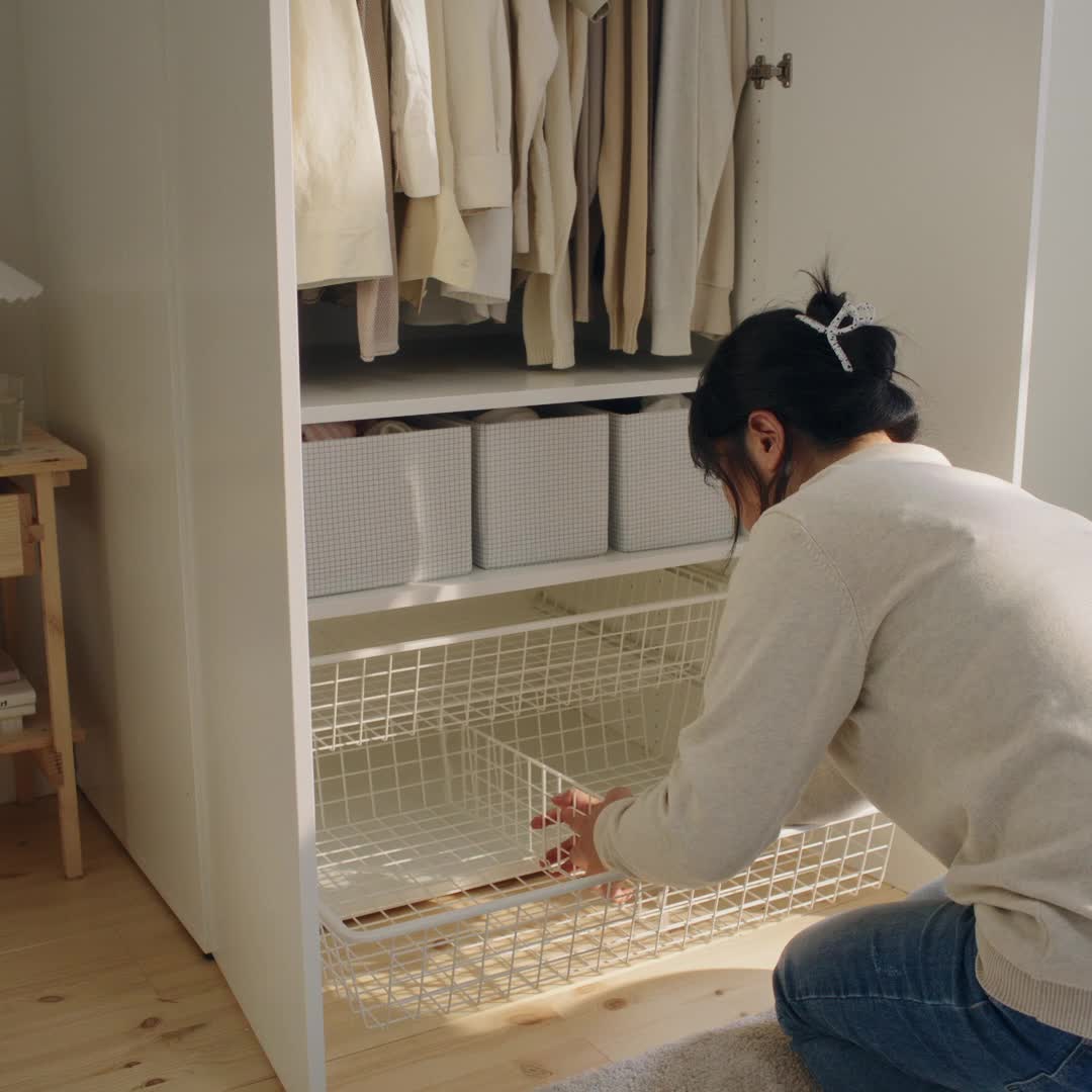 En las habitaciones pequeñas, cada detalle cuenta. Los organizadores interiores ALTARLIDEN se pueden colocar a diferentes alturas en las estructuras LASTARE y cambiarse de sitio fácilmente para optimizar el almacenaje, aunque las circunstancias cambien.