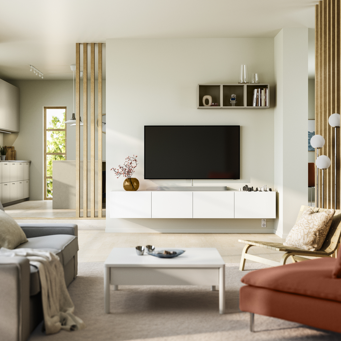 Haz que tu decoración sea tan inteligente como tu televisor. Con el mueble de TV BESTÅ puedes combinar el buen diseño con la funcionalidad. Además, ofrece mucho espacio de almacenaje y mantiene los cables organizados y ocultos.
