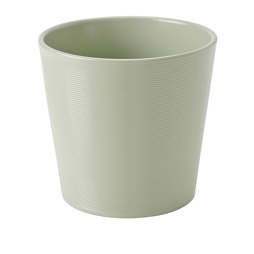 Este macetero grande con una forma clásica tiene una bonita textura y un color verde claro que realza las plantas. Se puede combinar con otros maceteros para conseguir un estilo personal.