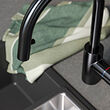 Retracción suave y rápida de la manguera gracias a un contrapeso de montaje a presión situado bajo el fregadero o encimera.