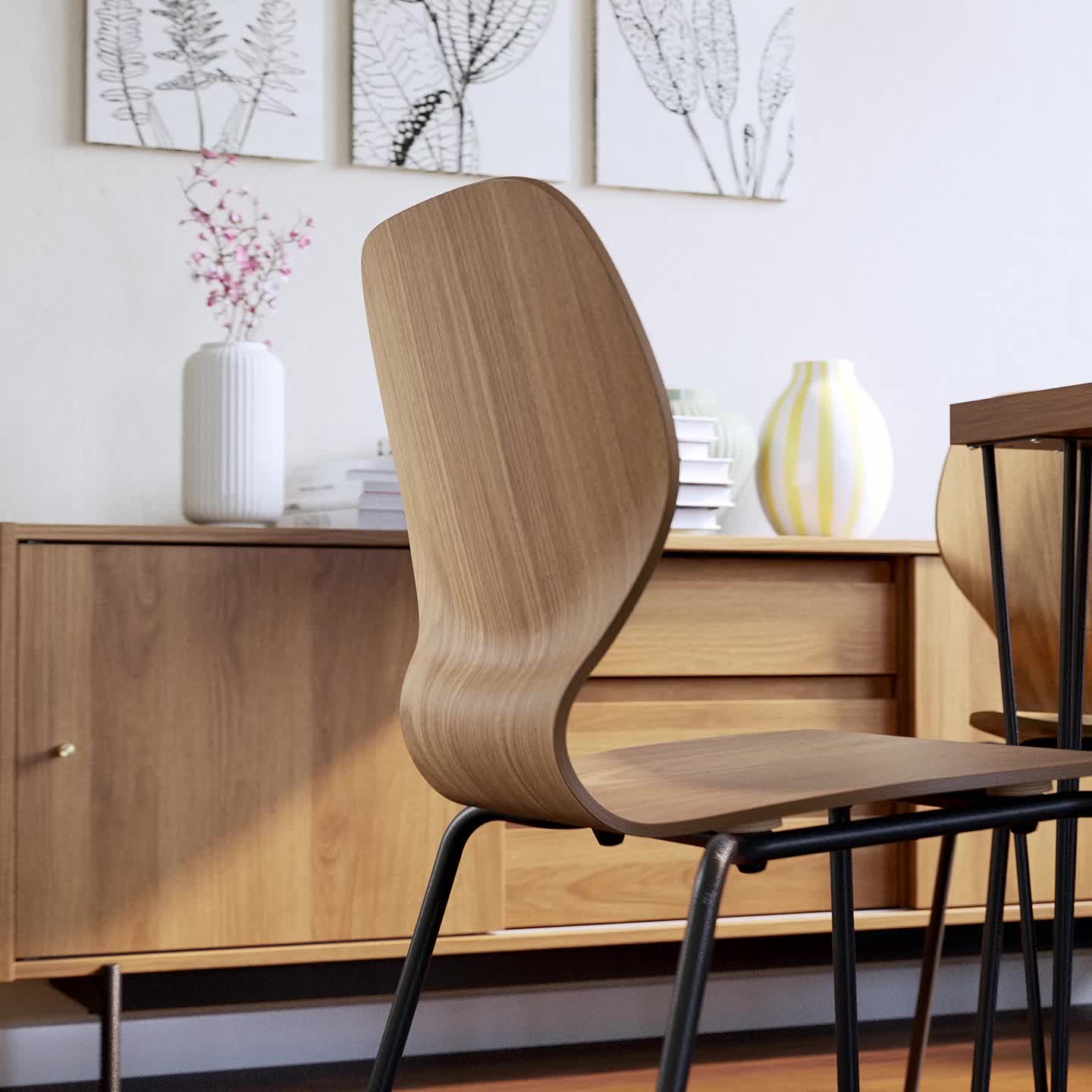 La silla queda muy bonita con la amplia selección de mesas de diversos acabados y colores de la serie SKÅLSTA.