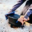 manopla, azul / marrón, 21x21 cm